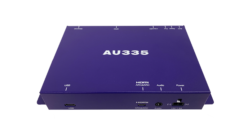 The BrightSign AU335 offers affordable, cloud-based audio with advanced sound technologies. It can play up to 3 audio files at once with mixing and supports ARC/eARC for high-bandwidth audio. USB, GPIO, and Ethernet controls allow for interactive experiences, and it can sync with other BrightSign players to control additional devices. With easy deployment and reliable performance, the AU335 provides high-quality audio for any application.