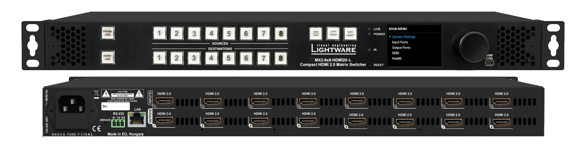 The MX2-8x8-HDMI20 L is an HDMI 2.0 compatible, standalone matrix switcher that supports uncompromised 4K UHD resolution at 60Hz 4:4:4.